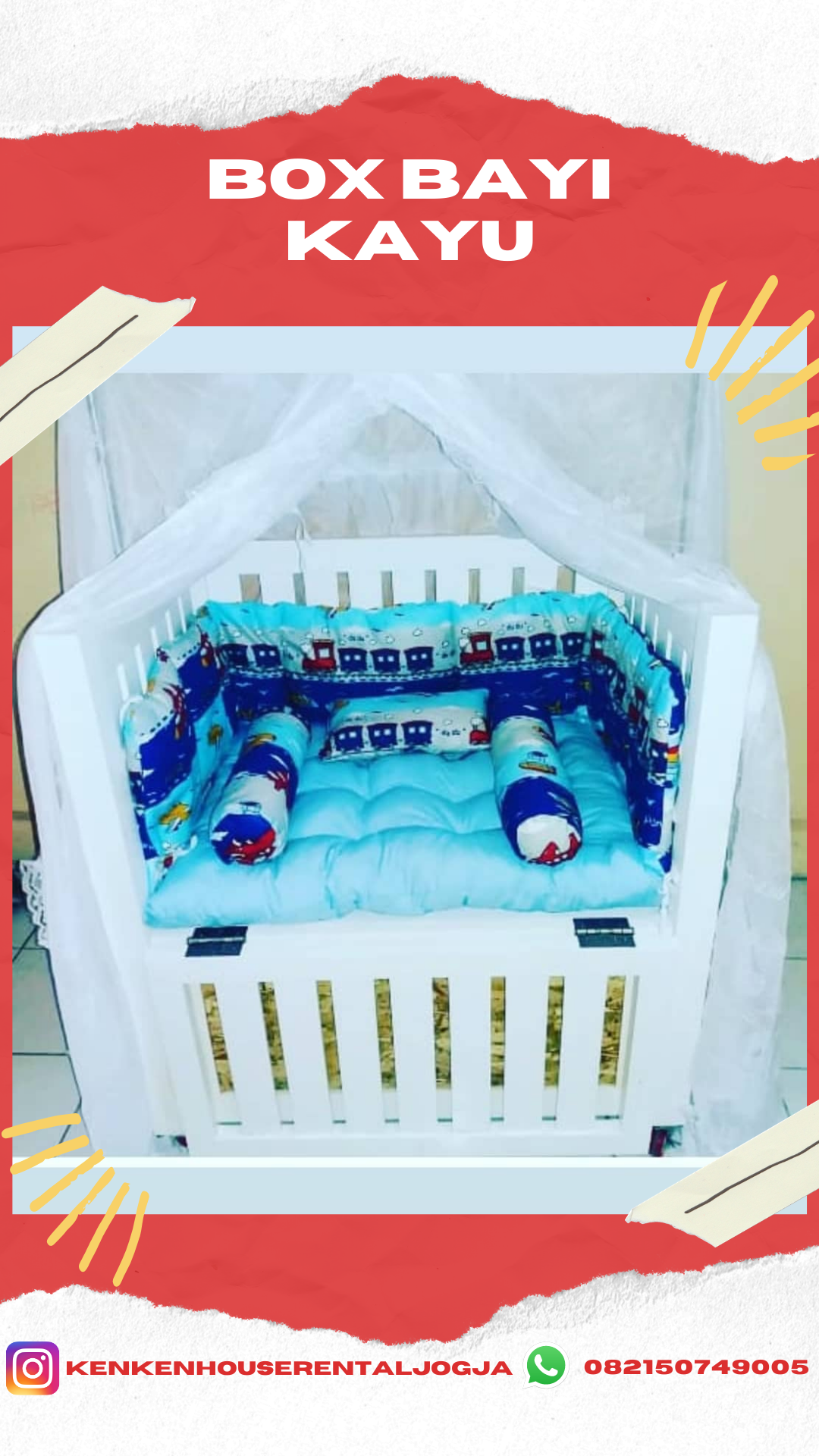 Box kayu putih standart box kayu putih motif kereta merah