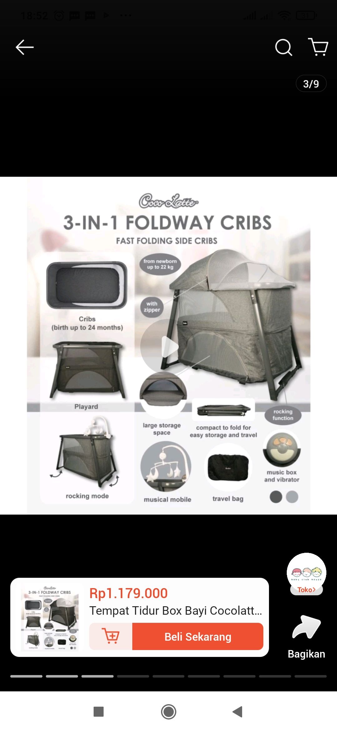 - Terdapat 3 mode: Cribs, Playard, dan Rocking