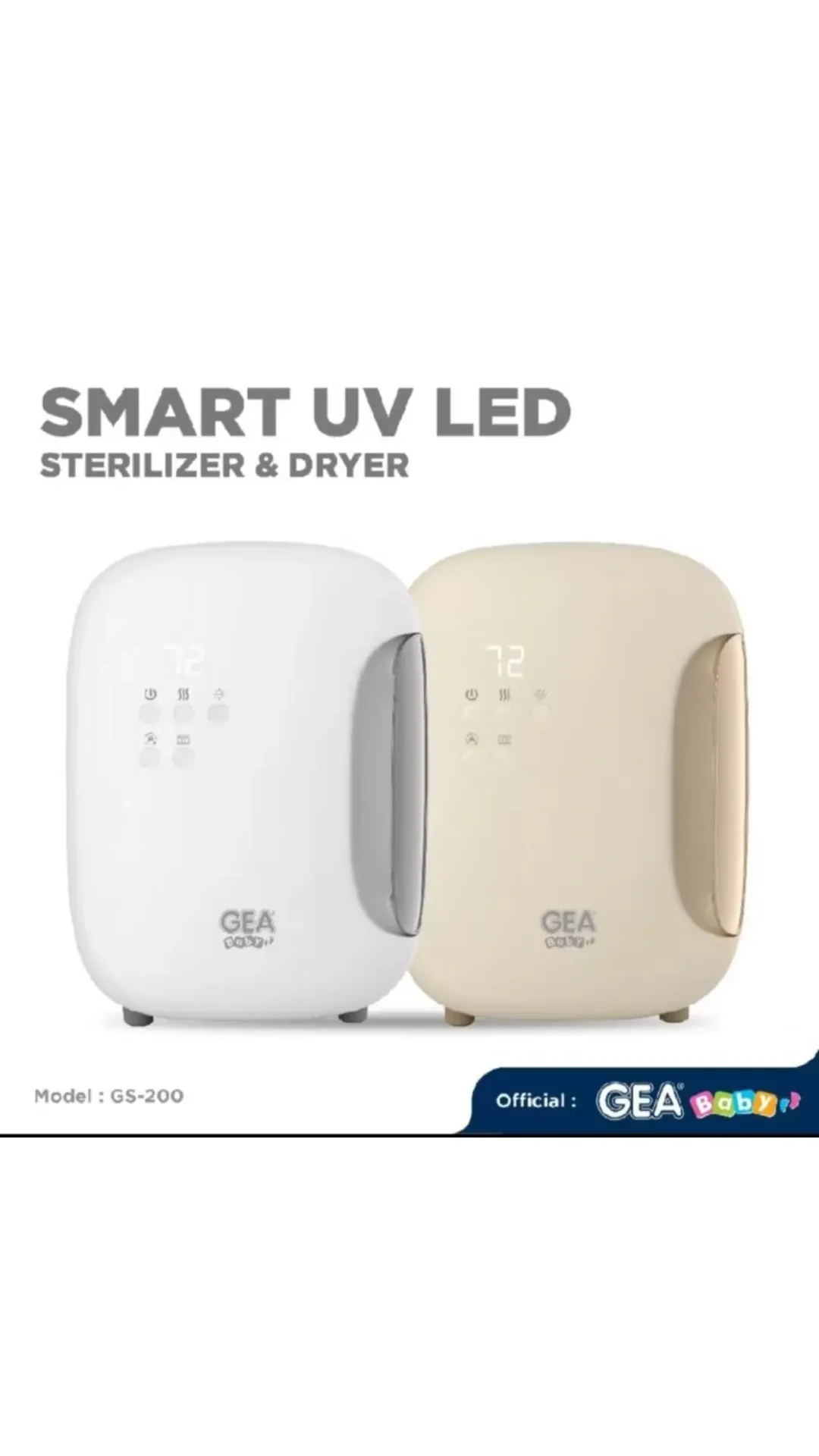 Gea baby Smart LED UV Sterilizer & Dryer GS-200 merupakan produk untuk mensterilkan sekaligus mengeringkan dan menyimpan barang agar terhindar dari bakteri, kuman, dan virus.